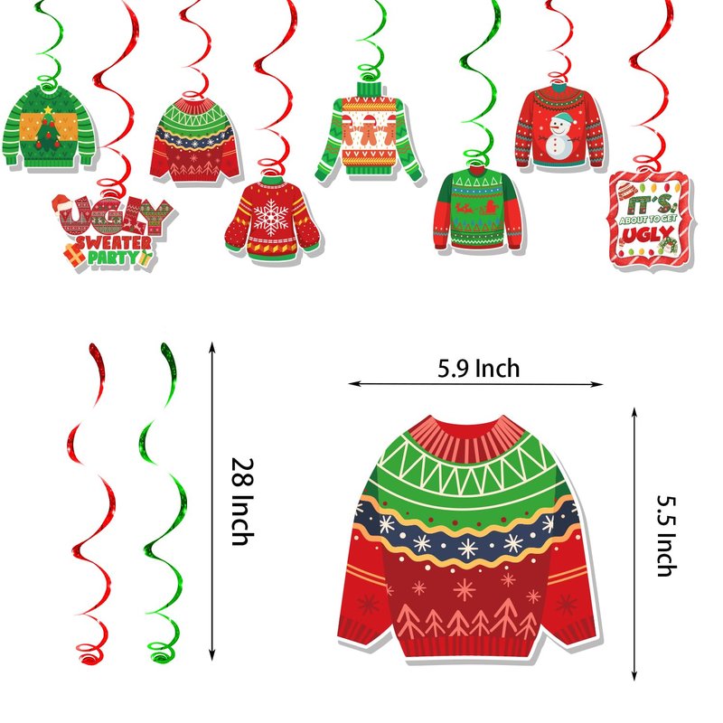 Ugly Sweater Party Decorations- It's About To Get Ugly Hanging Swirls Ugly Sweater balloons for Christmas Ugly Sweater Balloons Set for Merry Christmas Party Supplies Decorations