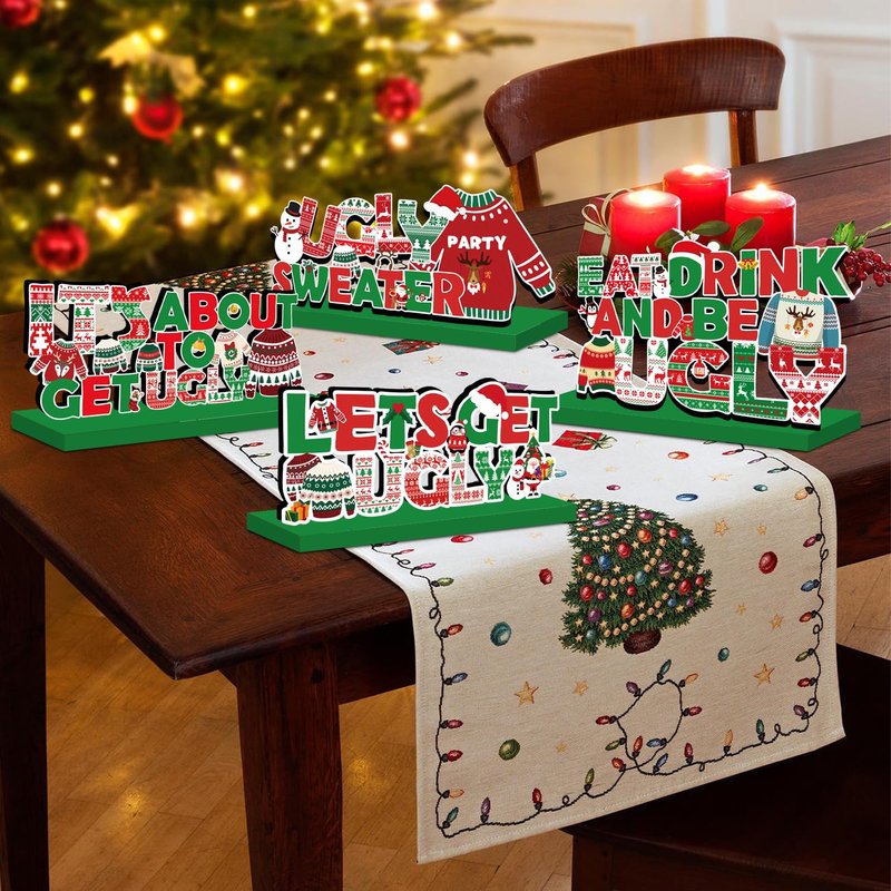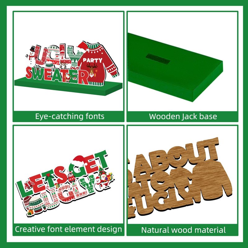 - Easy to Install: You will receive 4 different patterns of ugly sweater party supplies, just insert the wooden ugly sweater party decorations centre piece into the slit of the base to fix the centre piece, simple and solid. The ugly sweater party supplies are also removable, very easy for daily storage.