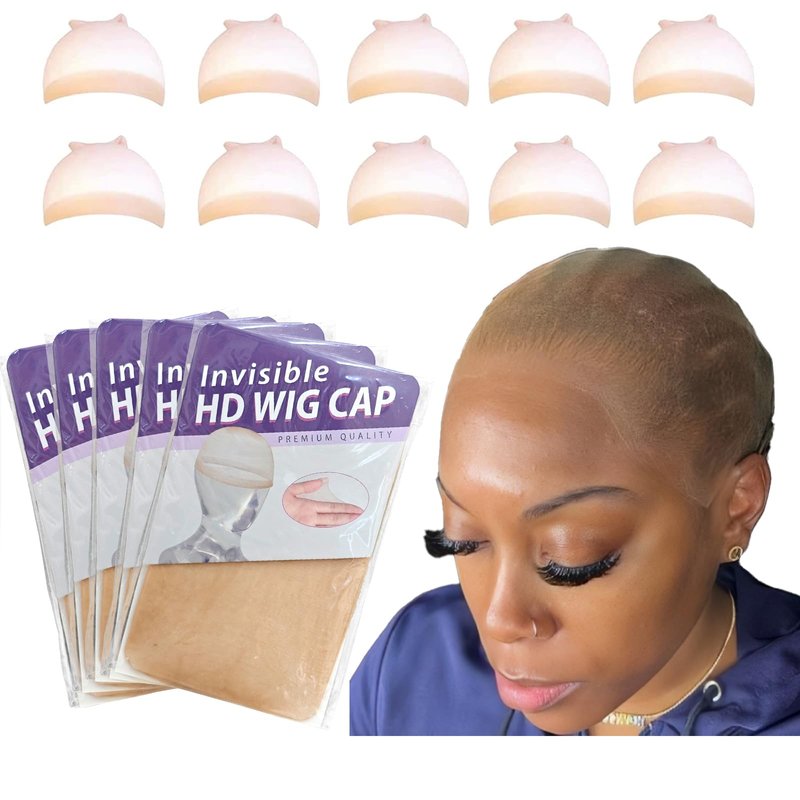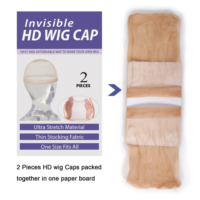 - ❤【HD Wig Cap For Lace Front Wig Package】2 pieces hd wig caps installed in a cardboard, and there are 10 pieces hd wig caps in total. HD Wig Cap is very transparent, can match all skin tones, can fit the skin well, and can neatly fix the hair in the appropriate position; To look more natural after wearing a wig.