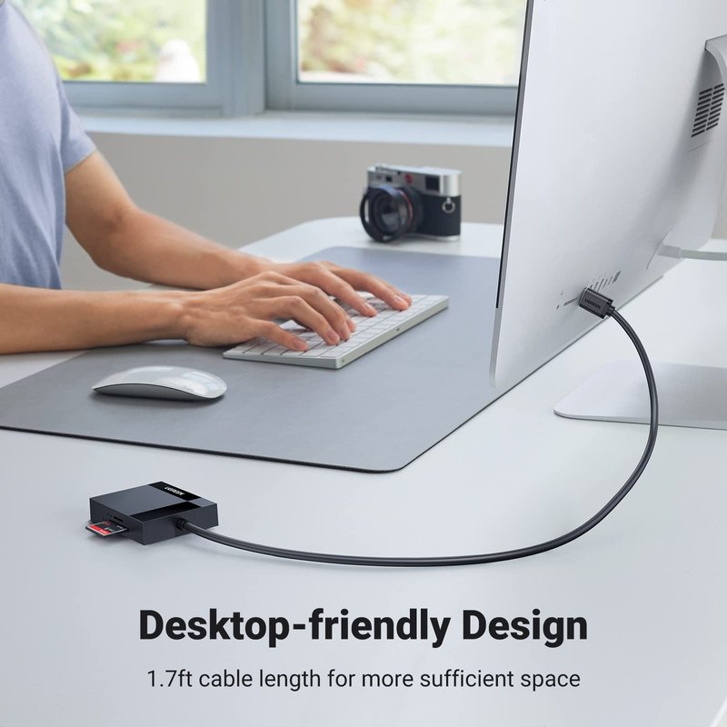 - Compact Design: 2.17*2.68*0.59 inches(L*W*H) / 1.7 ft cable, carry it anywhere. UGREEN USB 3.0 SD Card Reader is a great addition for workers on the go.