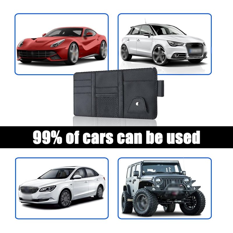 - Durable Material: The sun visor organizer made of premium PU leather material and stainless zipper with 1 zipped big compartment, 1 mesh pocket, 5 card holder pockets, 1 pen slot and hidden pocket. No irritating smells, upgraded material, sturdy and durable, not disturbing the view while driving, ensures safety.