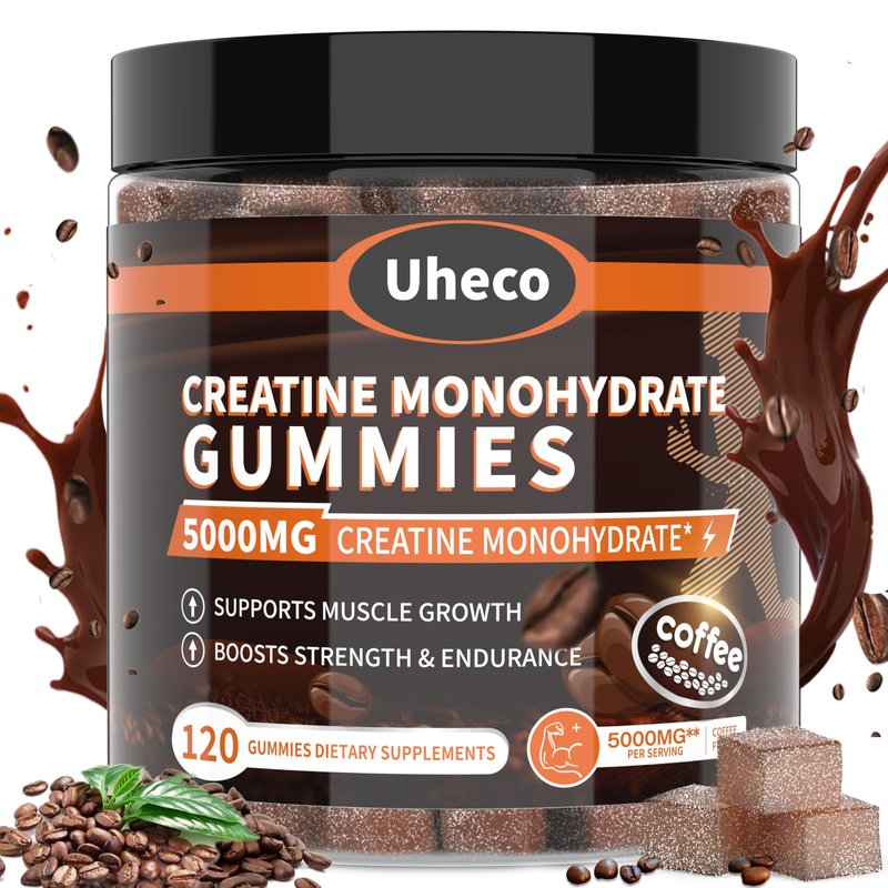 Uheco Coffee Flavor Creatine Monohydrate Gummies 5000mg for Men & Women,Contains L-Taurine + Vitamin B12, Betaine, L-Citrulline for Improve Exercise Endurance, Muscle Strength -120 Count