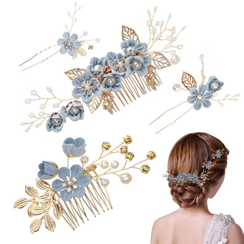 - Ideal sweet gift ------- The bridal hair pins set is a good gift for your lover ,there are small pearl ,leaves to decorate the hair tail, so that the design of the hair will be more refined with this hairpin embellishment