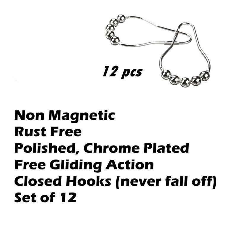- HEAVY DUTY CLOSING HOOKS – The hooks are strong enough to hold a heavy curtain. They are sealed shut, making it impossible for the curtain to slip off the rings.