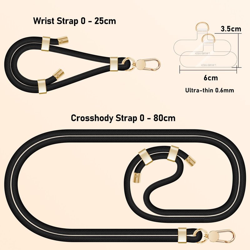 UKON Cell Phone Lanyard,Crossbody Lanyard and Wrist Strap Premium Metal Buckle Phone Charms with 2 X Phone Patch Compatible with All Smartphone(Black)