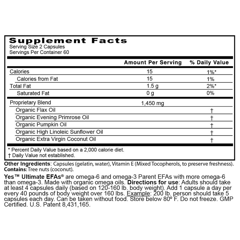 - ✅ YES Ultimate EFAs Supplements are produced with cold-pressed organic seed oils containing Parent Omega-6 and Parent Omega-3. Based on the formulation of Brian Peskin Ph.D. Organic Oils certified by QAI International.