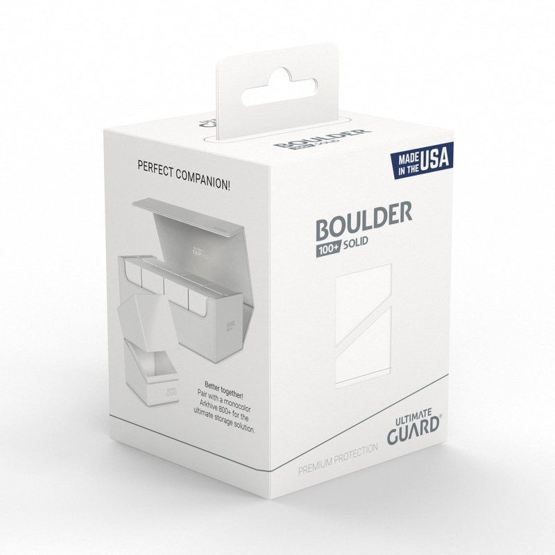 Ultimate Guard Boulder Solid 100+, Deck Case for 100 Double-Sleeved TCG Cards, White, Secure & Durable Storage for Trading Card Games, No Transparency