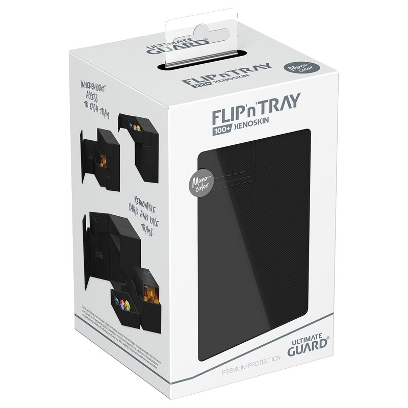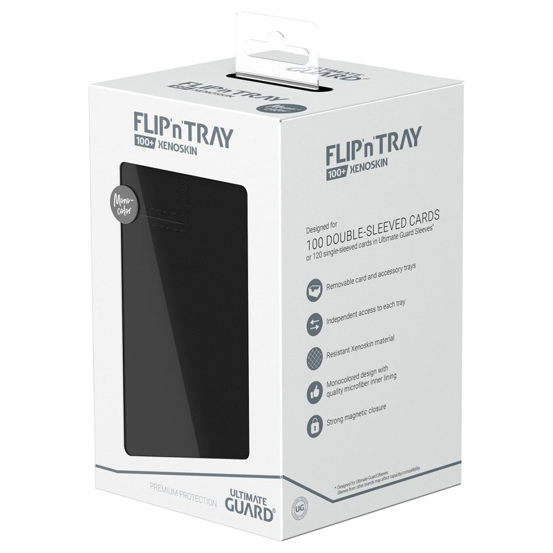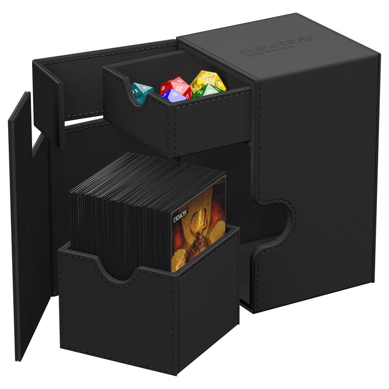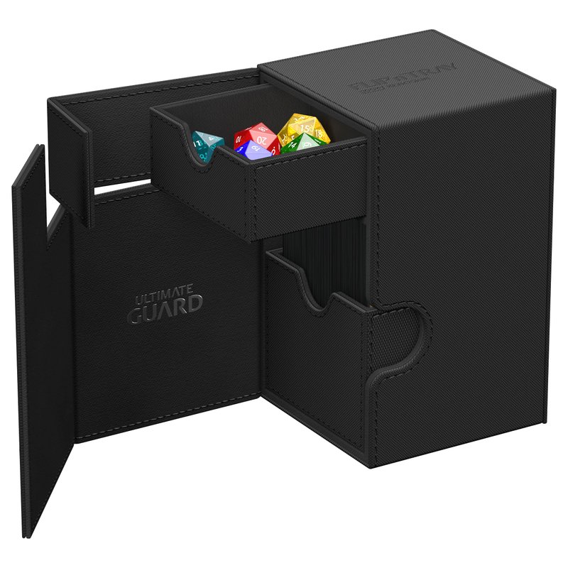 Ultimate Guard Flip 'n' Tray 100+, Deck Case for 100 Double-Sleeved TCG Cards + Dice Tray, Black, Independent Magnetic Closure & Microfiber Lining