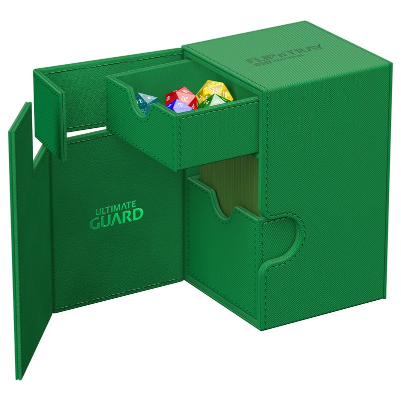 Ultimate Guard Flip 'n' Tray 100+, Deck Case for 100 Double-Sleeved TCG Cards + Dice Tray, Green, Independent Magnetic Closure & Microfiber Lining