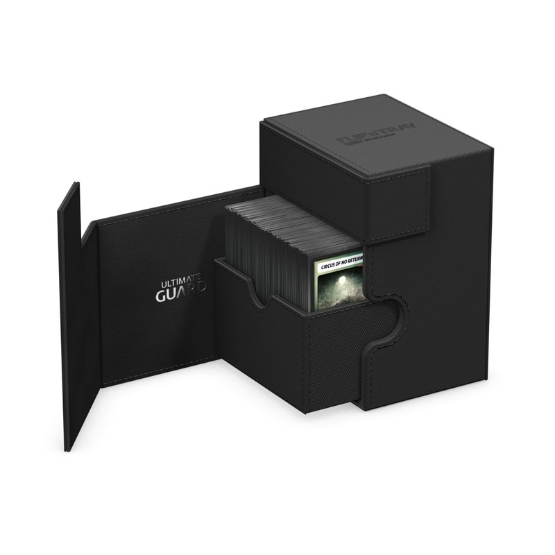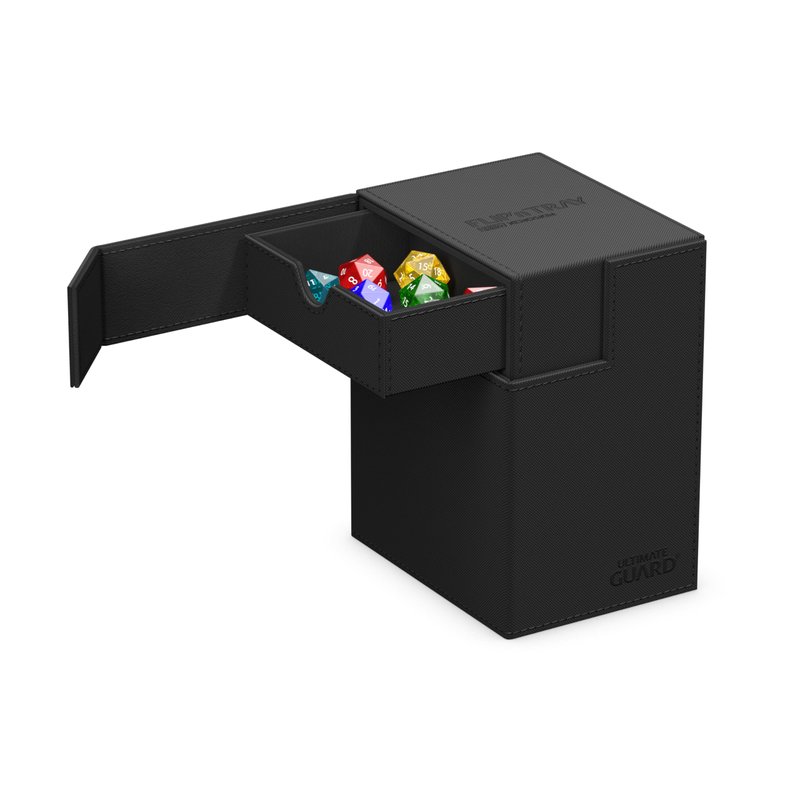 Ultimate Guard Flip 'n' Tray 133+, Deck Case for 133 Double-Sleeved TCG Cards + Dice Tray, Black, Independent Magnetic Closure & Microfiber Inner Lining