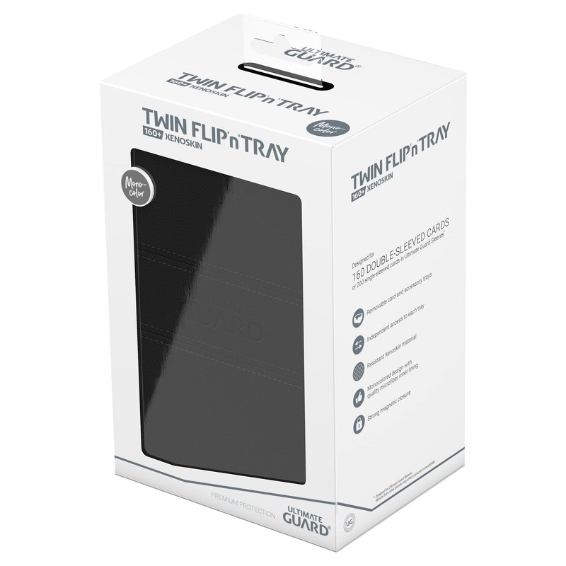 Ultimate Guard Flip 'n' Tray 160+, Deck Case for 160 Double-Sleeved TCG Cards + Dice Tray, Black, Independent Magnetic Closure & Microfiber Lining