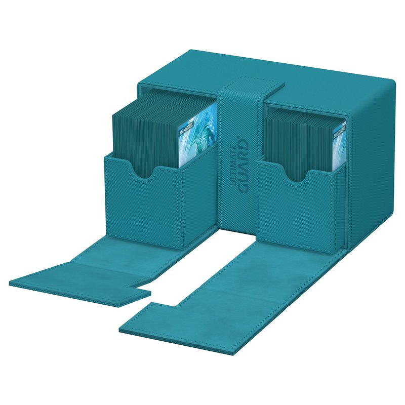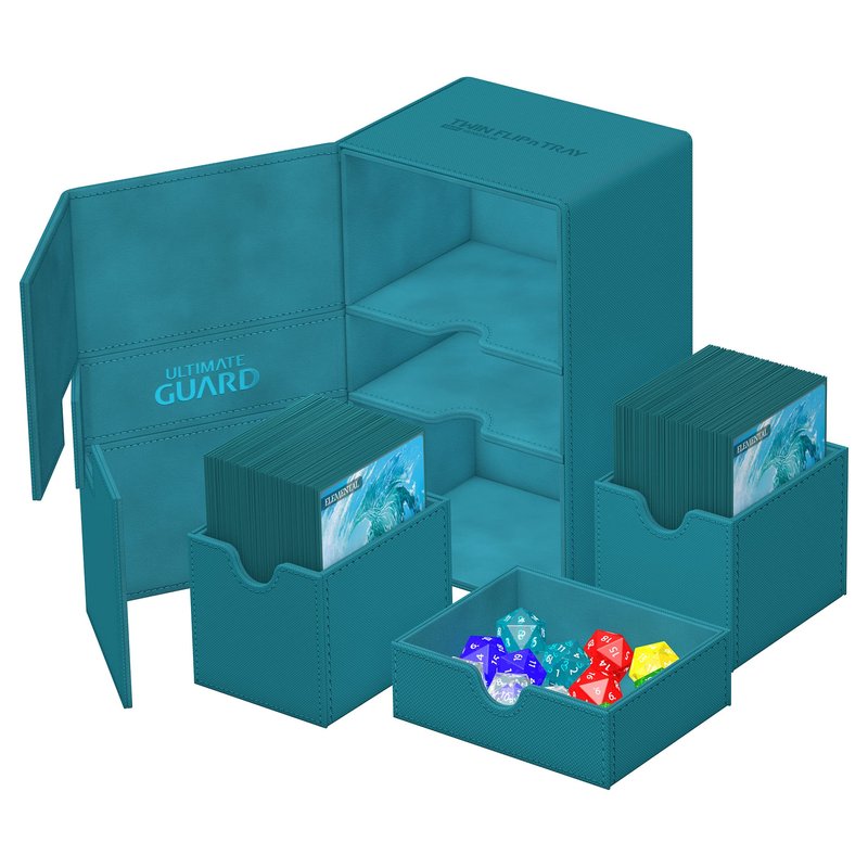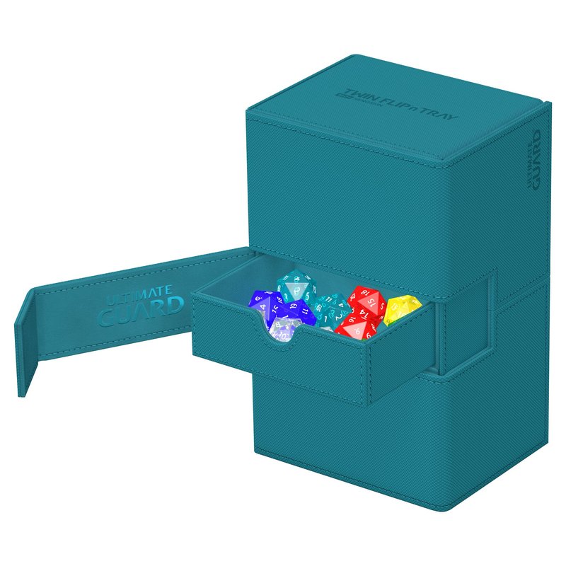 Ultimate Guard Flip 'n' Tray 160+, Deck Case for 160 Double-Sleeved TCG Cards +Dice Tray, Petrol, Independent Magnetic Closure & Microfiber Lining