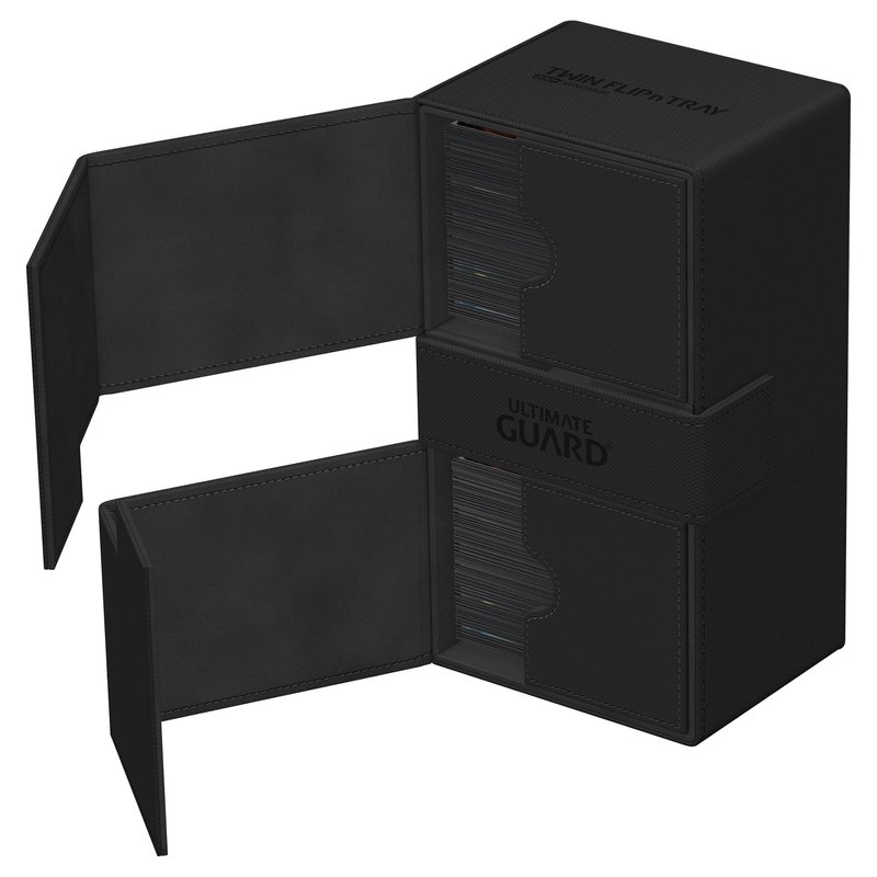 Ultimate Guard Flip 'n' Tray 200+, Deck Case for 200 Double-Sleeved TCG Cards + Dice Tray, Black, Independent Magnetic Closure & Microfiber Lining