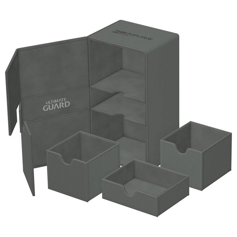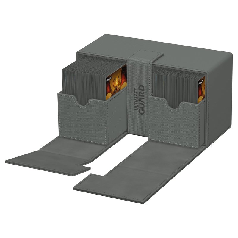 Ultimate Guard Flip 'n' Tray 200+, Deck Case for 200 Double-Sleeved TCG Cards +Dice Tray, Grey, Independent Magnetic Closure & Microfiber Inner Lining