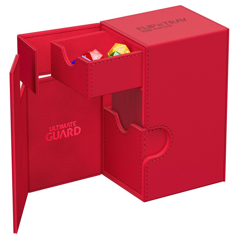 Ultimate Guard Flip 'n' Tray 80+, Deck Case for 80 Double-Sleeved TCG Cards + Dice Tray, Red, Independent Magnetic Closure & Microfiber Inner Lining