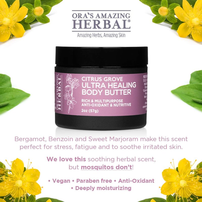 Ultra Healing Body Butter, Intensive Moisturizer For Dry Skin, Marjoram & Bergamot Essential Oil, Ora’s Amazing Herbal, 2 oz, Citrus Grove Scent