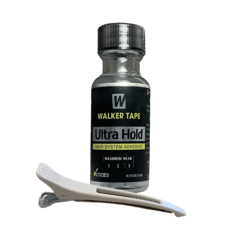 Ultra Hold Hair System Lace Glue Adhesive 0.5oz w/White Hair Sectioning Clip Bundle Pack | Wigs Front Bonding Weave Active Lace Adhesive Glue | Super Bold Hold Adhesive Glue