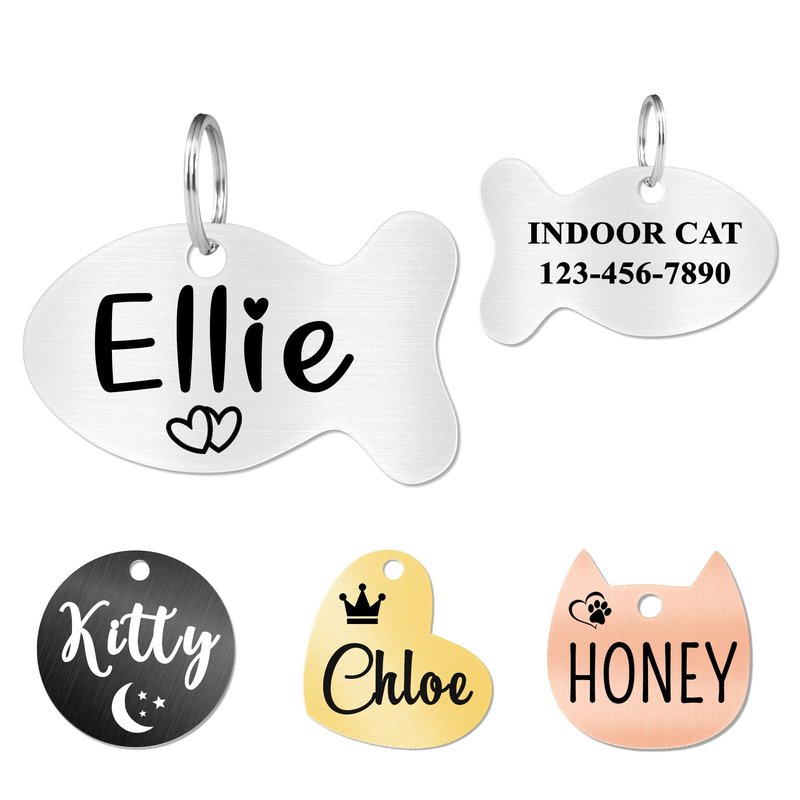 - QUALITY THICK STAINLESS STEEL PET ID TAGS - These cat id tags are made of stainless steel. Each one is hand-polished to mirror finish. They are made very sturdy. Stainless steel is resistant to rust and is ideal for long-lasting tags, It won't discolor on your pet's hair.