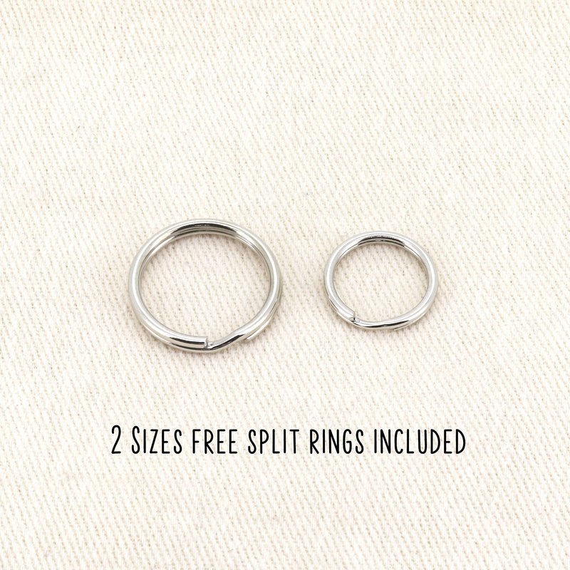 These pet collar tags are designed for small pets, it is thick and durable, but sizing small and not too heavy. Each name tag will also includes 2 different sizes of stainless steel split rings so you can easily attach the tag on your pet's collar.