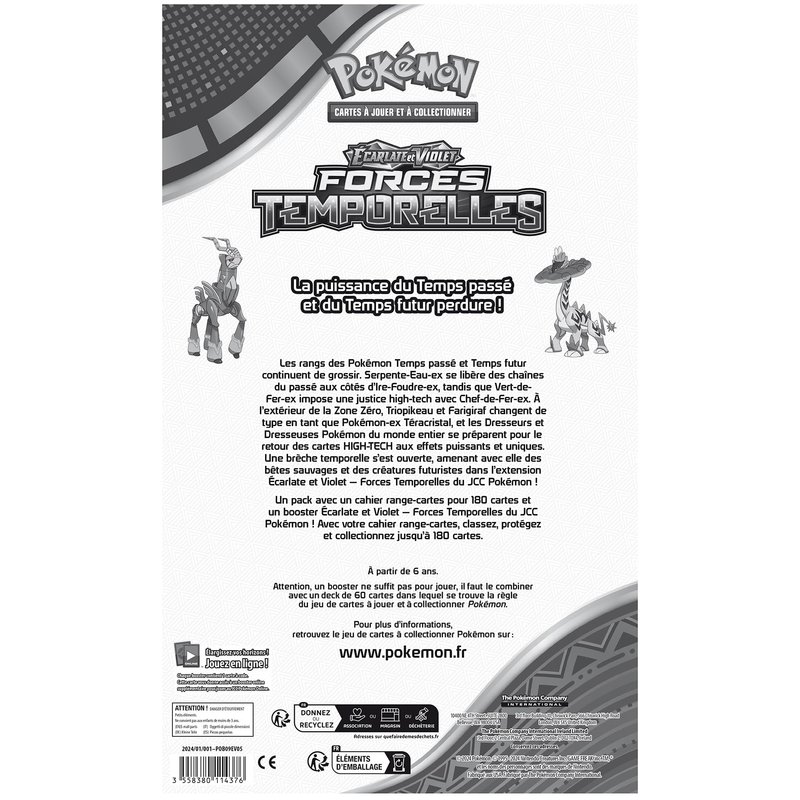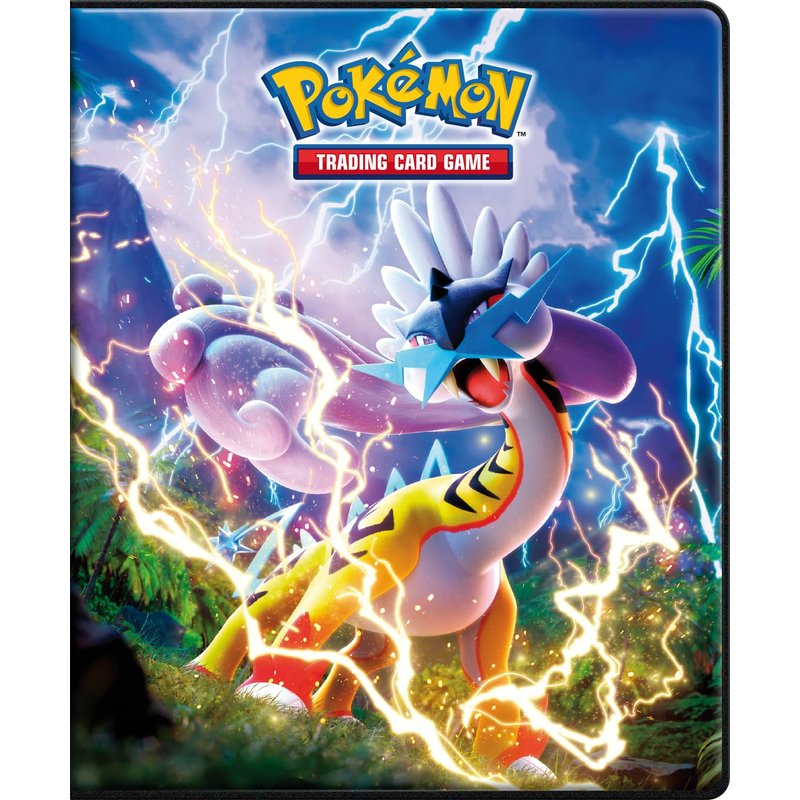 4-Pocket Portfolios for Pokémon feature a vibrant, full-art front and back cover with Raging Bolt and Iron Crown from Pokémon Scarlet and Violet. Each portfolio stores and protects up to 40 standard size cards single-loaded and 80 cards double-loaded in archival-safe polypropylene pages. There are also pages in the center of the portfolio to store up to 4 oversized Pokémon cards. Made in California, U.S.A. Whether you're a seasoned trainer or just beginning your journey, this portfolio effortlessly blends style and functionality to safeguard your prized cards. Perfect for organizing and showcasing your collection, it ensures easy access to your favorite cards while maintaining their pristine condition. Whether you're battling friends or trading at tournaments, this officially licensed portfolio embodies the essence of the Pokémon Trading Card Game, making it an essential accessory for any enthusiast.