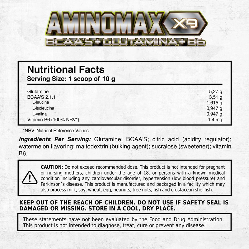 - Achieve Optimal Muscle Recovery – Aminomax X9 is powered by an advanced blend of BCAAs, performance-driven ingredients, and hydrating electrolytes designed to fuel, repair, and recover muscles from physical effort and tiredness after each training session. ¡Start training harder and comeback stronger!