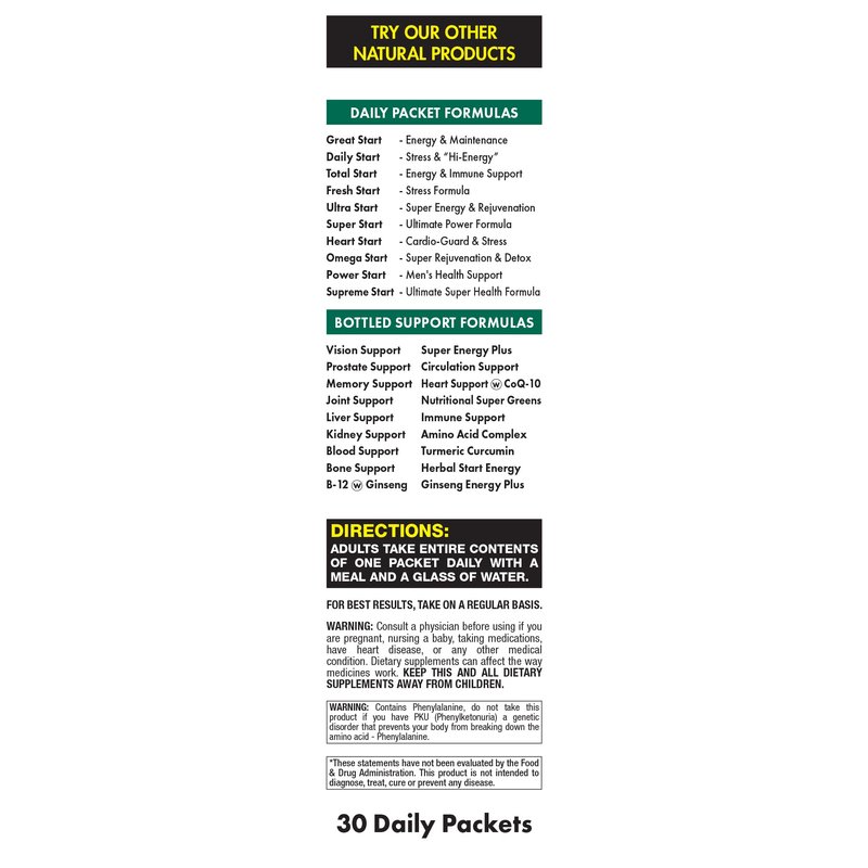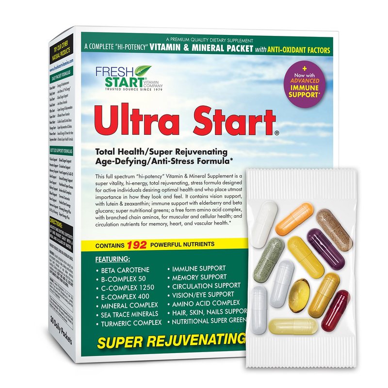 Ultra Start Complete Daily Vitamin Pack | Anti-Aging, Stress Support, Immune Booster | Vitamin A, B, C, D, E, Biotin, Minerals, Elderberry, Beta Glucans, Mushrooms, Amino Acids, Turmeric (30 Packets)