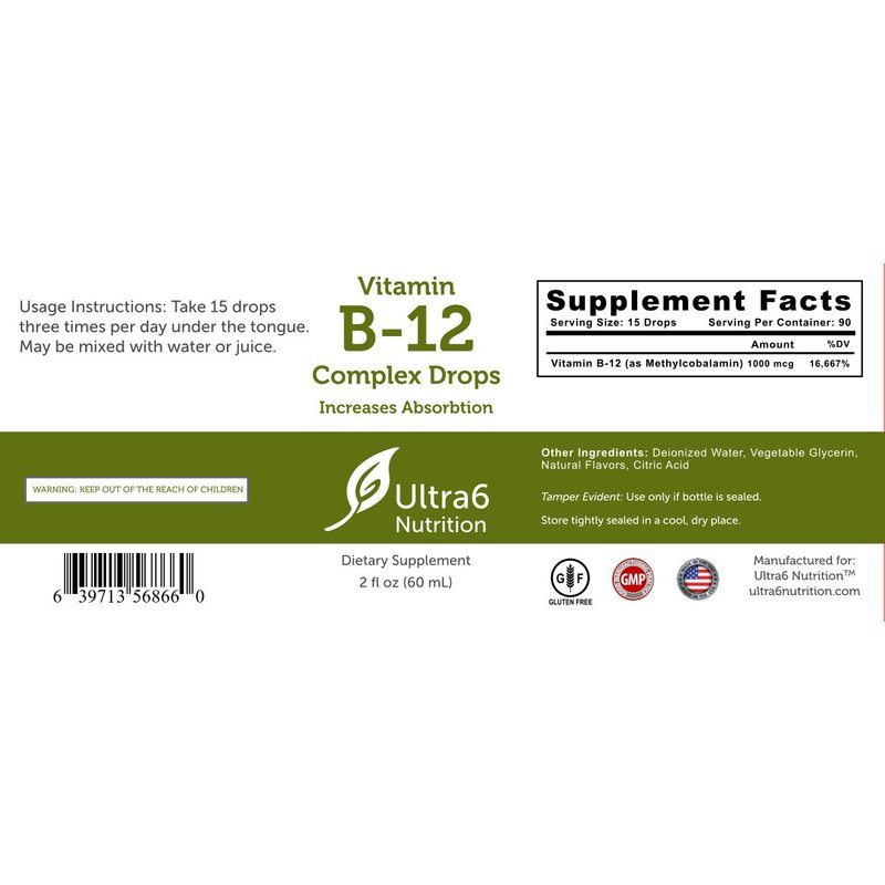 Energize Your Day with Ultra6 Vitamin B12 Liquid Drops: Kickstart your mornings with a burst of energy courtesy of Ultra6 Nutrition's b 12 vitamin drops. These fast-acting drops, packed with Methylcobalamin B12, swiftly enter your bloodstream, providing a quick and effective vitality boost. Feel the difference as fatigue fades away, leaving you ready to conquer the day. Pure Wellness, Uncomplicated Joy: Made in the USA within a GMP Certified Facility, our liquid b12 drops embody superior quality and safety. The unflavored elegance caters to adult palates, ensuring a delightful and straightforward nutritional journey. Elevate your well-being effortlessly, as our liquid vitamin b12 supplements become an integral part of your daily routine. Empower Your Health Journey with Ultra6 Support: Beyond providing premium vitamin b 12 liquid drops, we offer free telephone support for all your questions and guidance needs. Experience personalized care that goes hand-in-hand with your wellness goals.