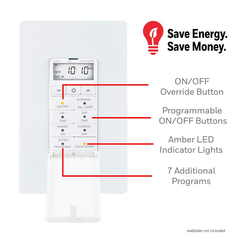 UltraPro Daysmart 7-Day Digital In-Wall Timer, Presets/Countdown Timer, Programmable Settings, Override, Sunrise/Sunset, Light Timer for Indoor Lighting, Porch, Seasonal, LED, Timer Switch, 40954