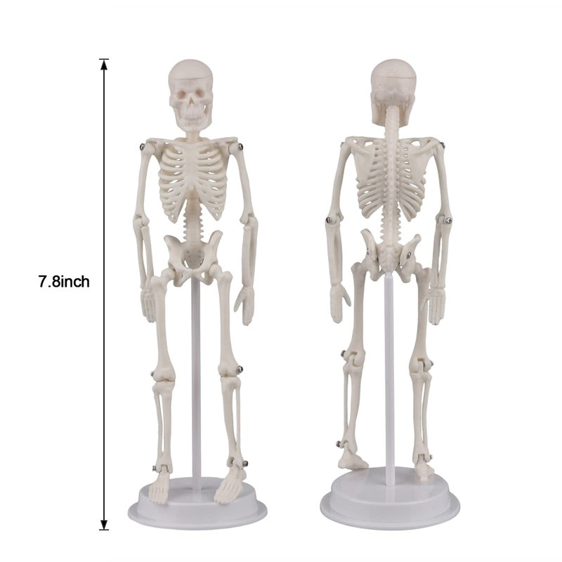 - The assembled skeleton model is only 7.8 inches. Miniature skeleton models are perfect for doctor's office desk decorations, Halloween and Easter decorations, mantel displays, drawing or project presentation pieces. A great gift for medical students.