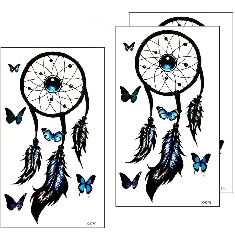 Umama Lot of 3 Mini Tattoos Butterfly Dreamcatcher Realistic tattoos Feather Dream Catcher Cartoon Waterproof 3D Men Women Arm Tattoo Temporary Tattoos Sticker Fake Tatoo Body