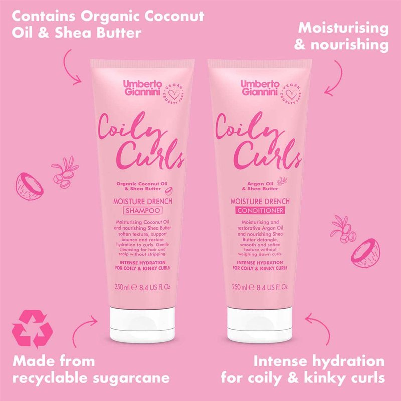 - Vegan & Cruelty Free - Umberto Giannini Coily Curls Conditioner is tested on hairstylists, not animals; It contains no animal or animal derived ingredients; Free from sulphates, silicones and parabens; No animals need to be harmed for a little hair support