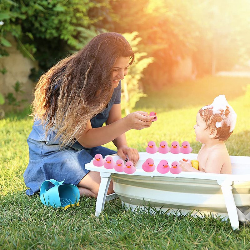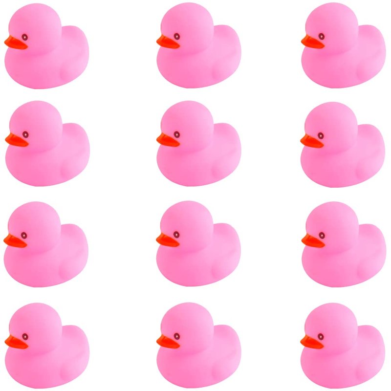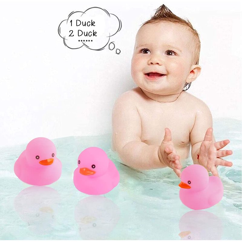 - 【Rubber Duck Bath Toys Set】: The package of the rubber duck bath toys set contains 12pcs pink ducks of the same size. The size is 2.2 x 1.9 x 1.7 inches, which is perfect for your baby's bath time. Counting the ducks will also help your little ones learn simple math.