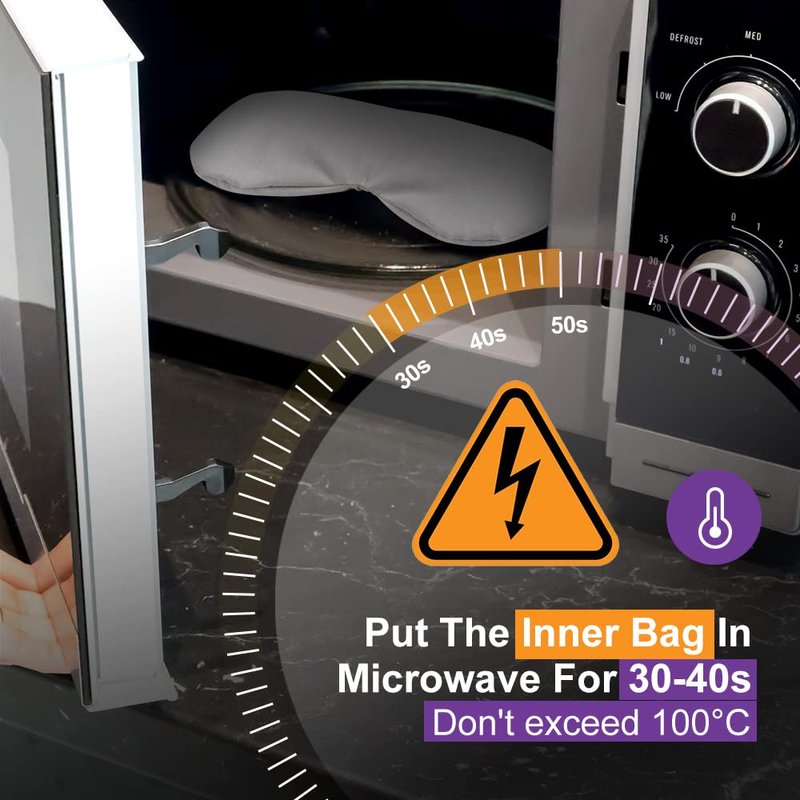 - [Hot or Cold Therapy] Put the sleep mask into a microwave for 40-60 seconds under 90°C/194 degrees Fahrenheit/600W (do not overheat), promote blood circulation around the eyes for hot therapy. Or put the weighted eye mask into the refrigerator for 1 hour for cold therapy. Warm tips: Under 30min using time for hot/cold therapy is suggested