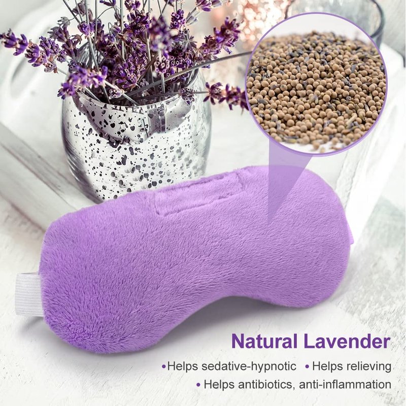 - [Effective Soothing] Original Lavender Aromatherapy: The Inner Bag of the weighted eye mask is made up of 7 oz natural lavender herb and premium compression beads with a lavender scent, its weighted compression aids in the feeling of relaxation and is effective for relieving eye fatigue, headache, puffy eyes, migraine, sinus pain