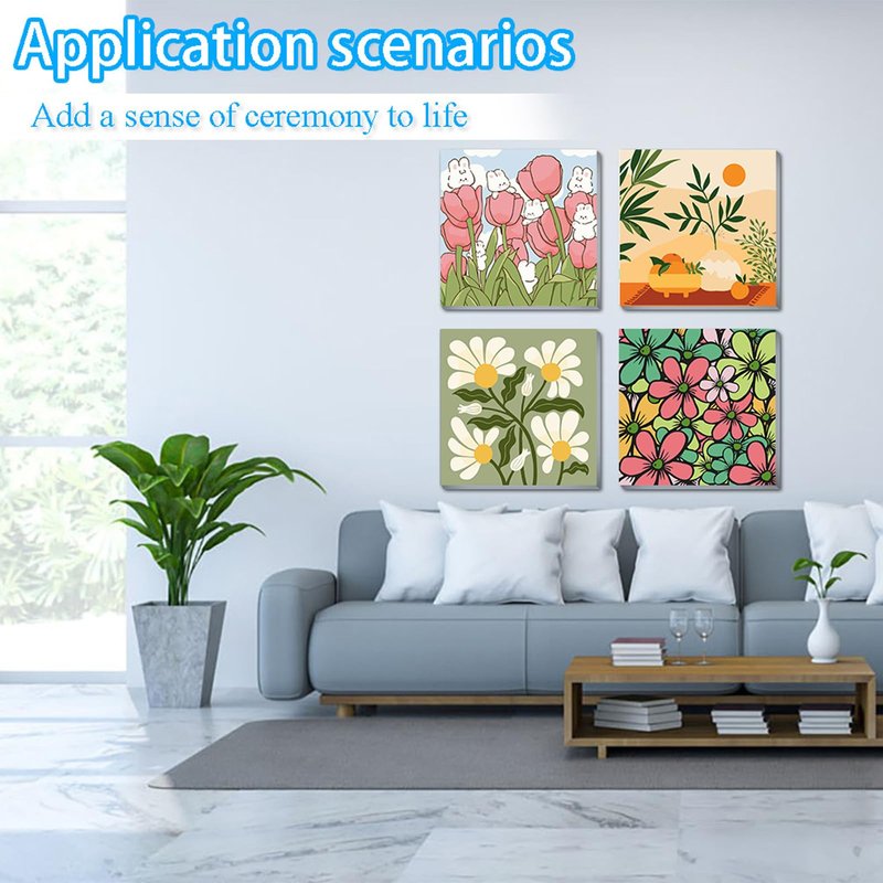 UMOART Framed Paint by Numbers for Kids - 4Pack Flowers Paint by Numbers for Kids Ages 4-8-12, Paint by Number Kits on Canvas, DIY Landscape Oil Painting Acrylic Kits for Home Decor 8x8in