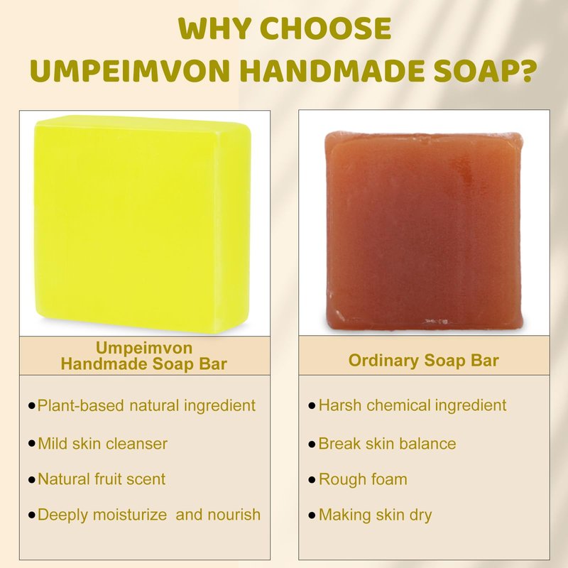 The Natural Soap Bar Ingredient: pineapple extract, purified water, glycerin, Vitamin C, sodium hydroxide, coconut oil, Vitamin E, melaleuca alternifolia oil. Features: All organic ingredients which free of paraben and alcohol, cruelty free. Enable gentle cleansing and moisturizing with handmade quality, leaves pineapple scented. Umpeimvon cares for all skin health, we use simple but effective ingredients to achieve a pure hydrated skin condition, let your skin remain a natural radiant glow, help your skin stay soft and silky. Application: All type of skin, Face, Hand, Body