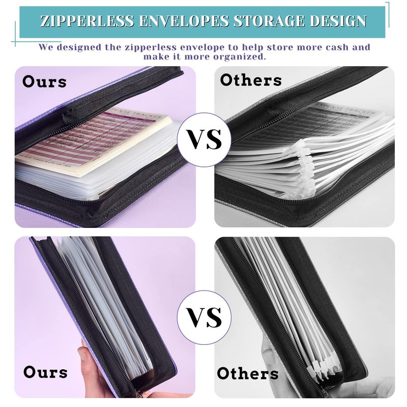 - 【Zipless Envelopes Design】: The Zippered binder is better suited for zipless envelopes because zippered envelopes can only fit into the money saving binder in small amounts, and too many will prevent the binder from zipping up. Zipless envelopes will make it easier to access your cash, and the cash envelope binder will fit more zipless envelopes. All cash envelopes for budgeting can organize in the budget binder.