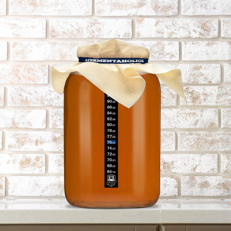 Kombucha fermentation requires airflow, so you can't put a lid on your fermenting vessel and deprive it from oxygen. The best choice is a tightly woven but breathable cover on your kombucha vessel to provide the perfect environment for a healthy brew.