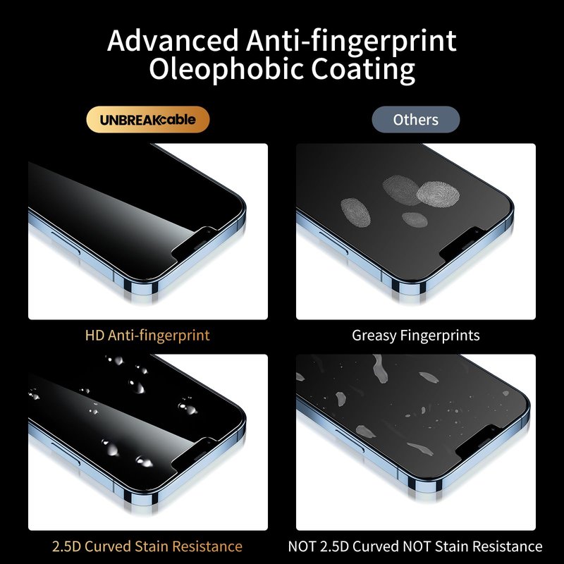 - 【Easy Installation】- Our privacy screen protector is designed for your iPhone 14/ 13/ 13 Pro 6.1 inch display, Due to its open-edge design, does not affect the use of the front camera and face ID, just the right space around the edges to provide wide compatibility for your case. It is dual-packed and comes with an auto-alignment installation frame for effortless adhesion. 36-month warranty and easy-to-reach customer service. UNBREAKcable Support Team always stands by your side to help.