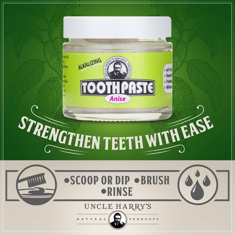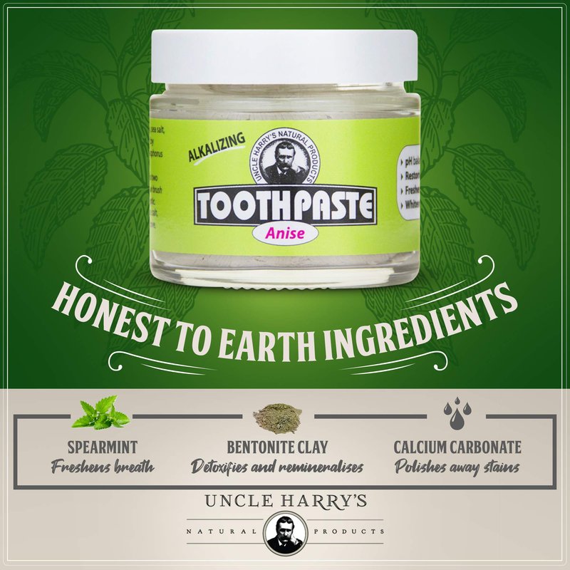 - FRESH BREATH - An all natural toothpaste that eliminates bad breath with exotic spiced anise and refreshes your mouth with mineral clays, sea salt, and pure plant essences all day long. Uncle Harry's Natural Tooth Paste Products come packaged in an Earth-friendly, zero waste glass jar that’s been labeled by hand.
