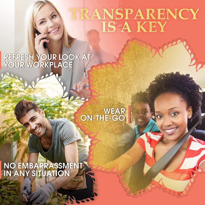 ✔ See-through and non-slip under eye pads for dark circles CAN BE USED ANYWHERE without having to lie down for 20 minutes - saves precious time while also offering flexibility to use in public spaces without attracting unwanted attention.