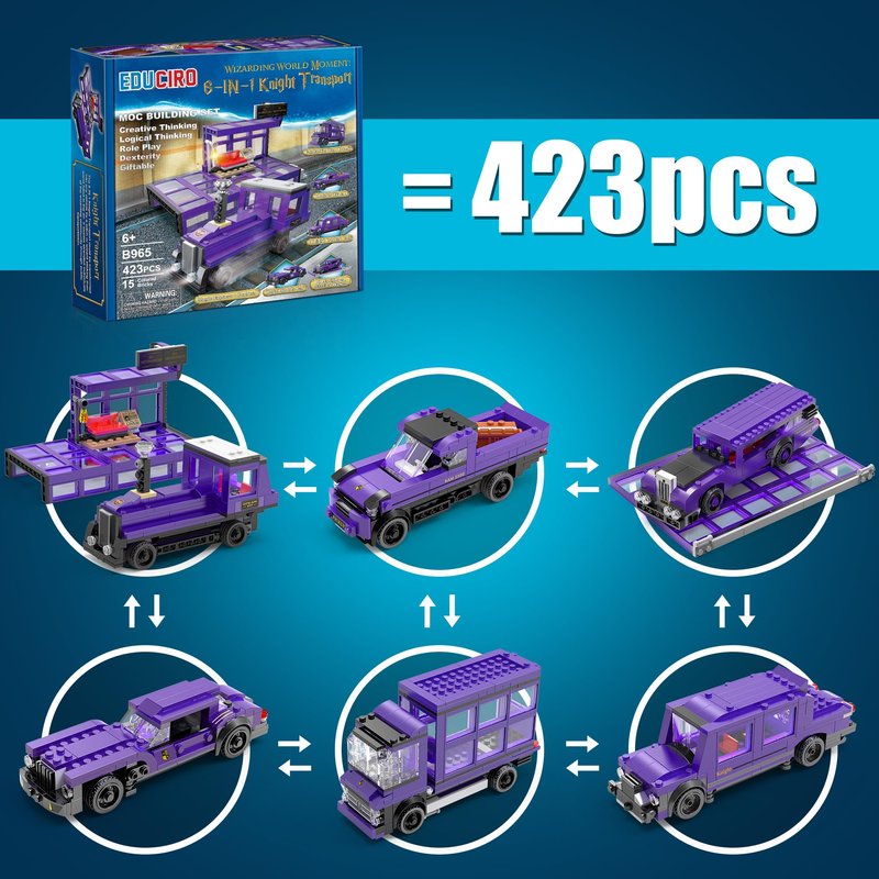Under the Baubles Educiro Harry World 6 in 1 Car Toys Building Set Gifts for Kids, Girls, and Boys Ages 6-12 (423pcs),Sports Car,Van Truck,Harry's Truck,Knight Lxury Car,Wagon,Magic Express