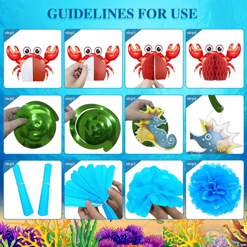 - [Easy to Install] Just refer to the operation guide, you can easily have the ocean themed decor kit. Quickly transform your party space with sea creature decorations, perfect for creating a vivid underwater world at children's birthday parties