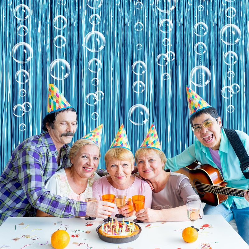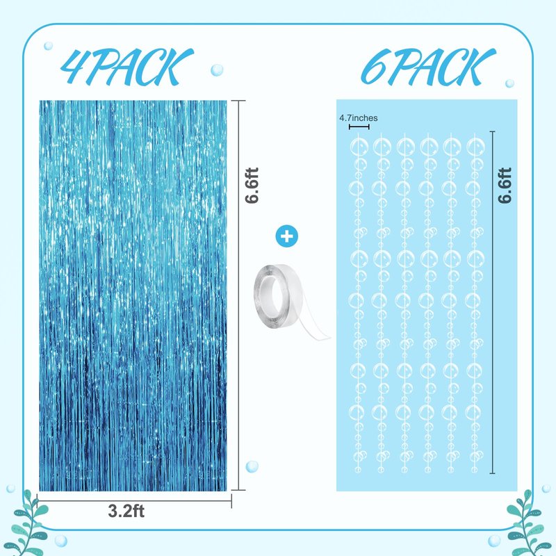 - Package Includes:Blue Backdrop*4(Total width is approximately 9.9 ft), bubble garland*6(with total length about 18 ft.),double side tape*1.The combination of under the sea party decorations can instantly transport you and your guests into the vast and tranquil depths of the ocean and into a whole new world of party!