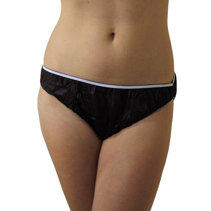 Made of extra soft polypropylene these disposable panties for women are styled as a brief and feature a 100% cotton crotch liner with a fashionable pico trimmed elastic waistband and legs for a snug fit. Every garment is individually roll folded and wrapped for easy transport in your purse or overnight bag. You get 30 individually wrapped briefs packed in 6 packages of 5. Wear & discard! Perfect for menstrual days, hospital stays, spa visits, while traveling, camping, before or after workout. 30-Pack. White and Black are available.