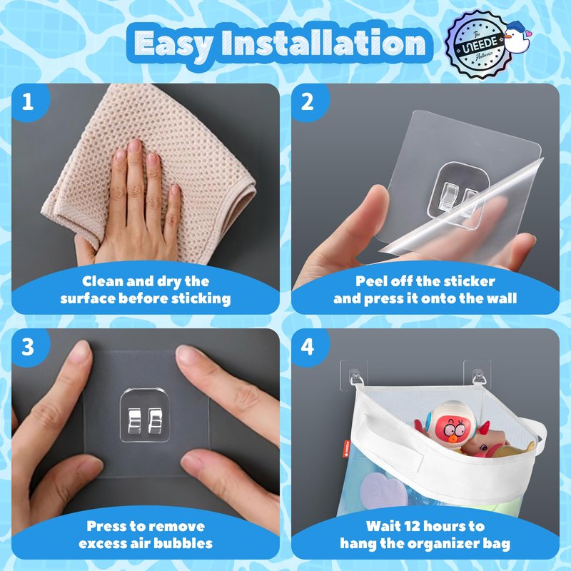 - 【Why We Choose Sticker But Not Suckers】Greater load capacity, longer to use.Unlike suction cups that tend to slip off due to too much humidity, the stickers stay firmly on the wall.It also offers a weight capacity of up to 22 pounds, allowing you to place more toys. For this reason we have prepared a detailed video & photo installation tutorial. It is convenient for you guys to be able to install the organizer in the exact location.