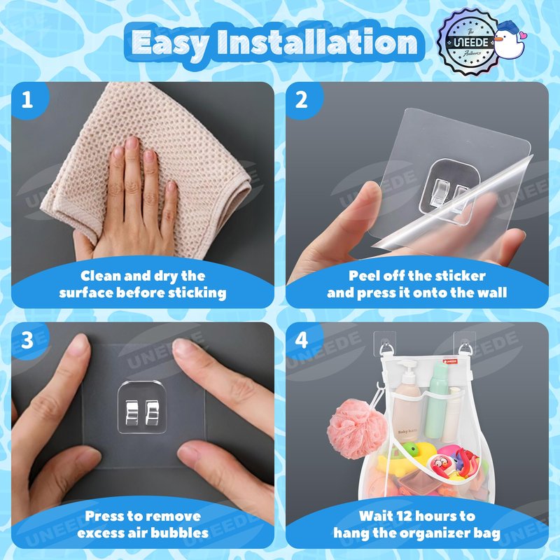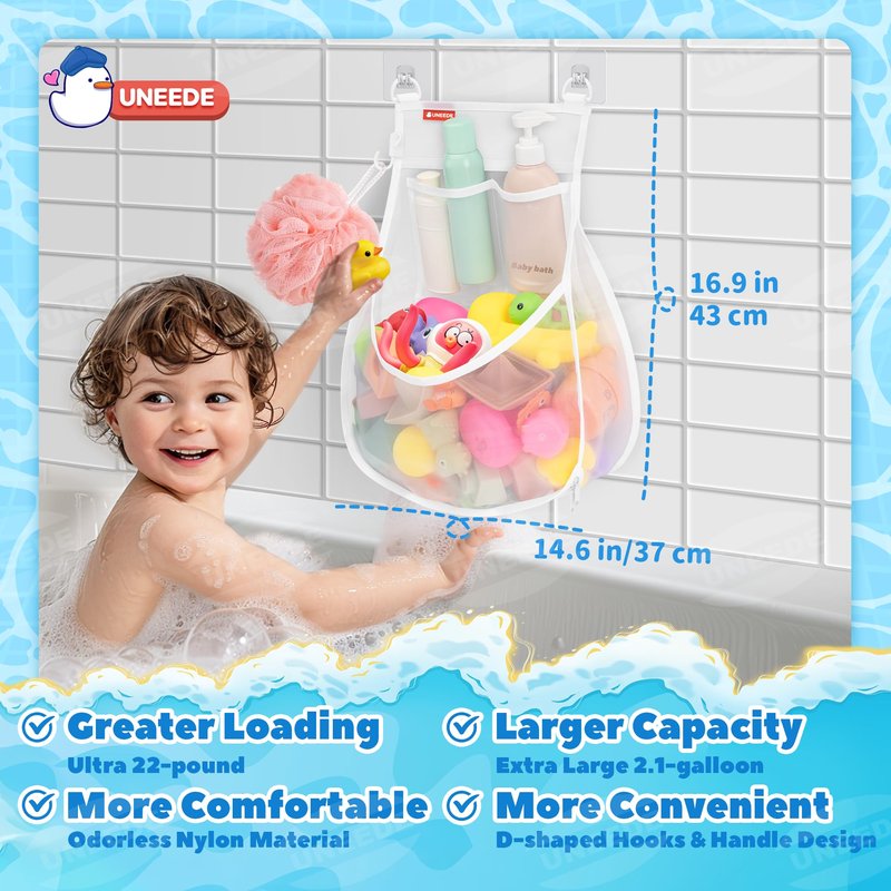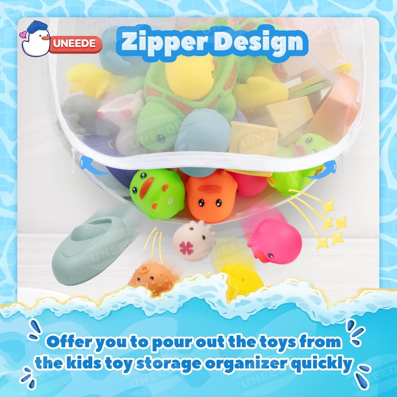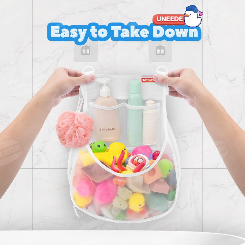 - 【UNEEDE Bath Toy Storage Design】We have made it possible to “put” tons of bathroom toys into the walls. The thin, deep pockets not only hold the kids' loot, but also don't take up space in the bathroom. Not only that, but we've even included storage for bath balls and bath products.