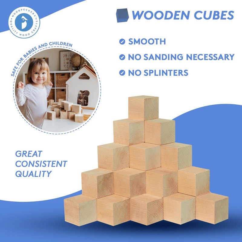 - PERFECTLY SQUARE AND CONSISTENTLY SIZED- You don't want just any craft cubes, you want the qualitest of the quality! So choose our precisely square and always the same size Small wooden cubes.