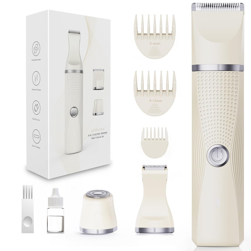 unibono Bikini Trimmer for Women,3-in-1 Rechargeable Hair Trimmer for Women,Waterproof Electric Women Trimmer for Pubic,Face,Leg and Underarm in USB-C Charging