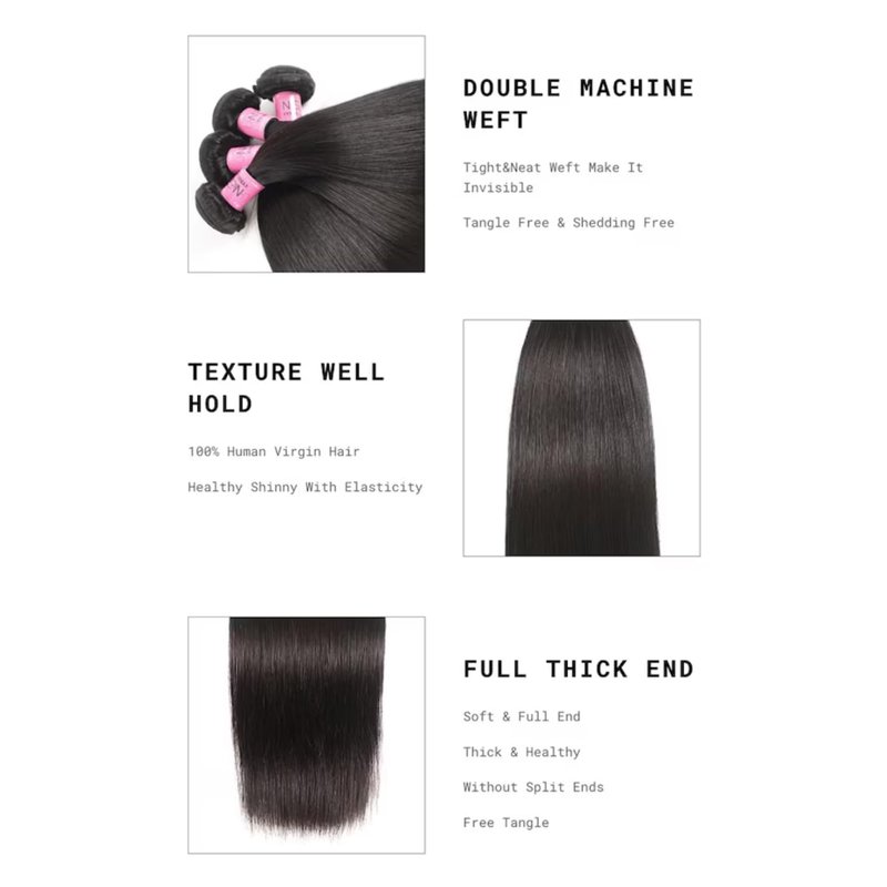 UNice Hair Brazilian Straight Hair 3 Bundles Hair Weft 100% Unprocessed Virgin Human Hair Extensions Weave Natural Color (10 12 14inch)